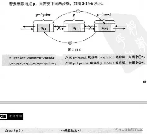 单链表的删除,删除单链表中第i个数据(q)的算法思路(时间复杂度O(n)):