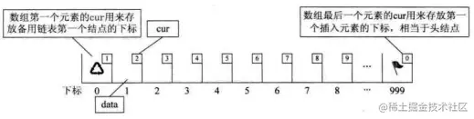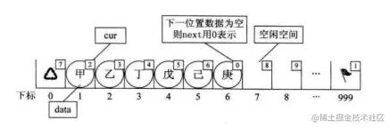 4、将要删除的分量下标赋值给第一个元素的cur(也就是将删除之后空余的空间记录下来)