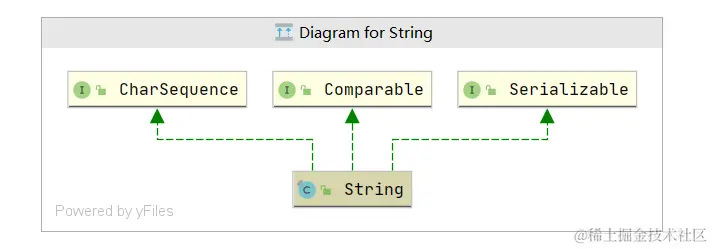 - String类实现了Serializable、Comparable、CharSequence接口。