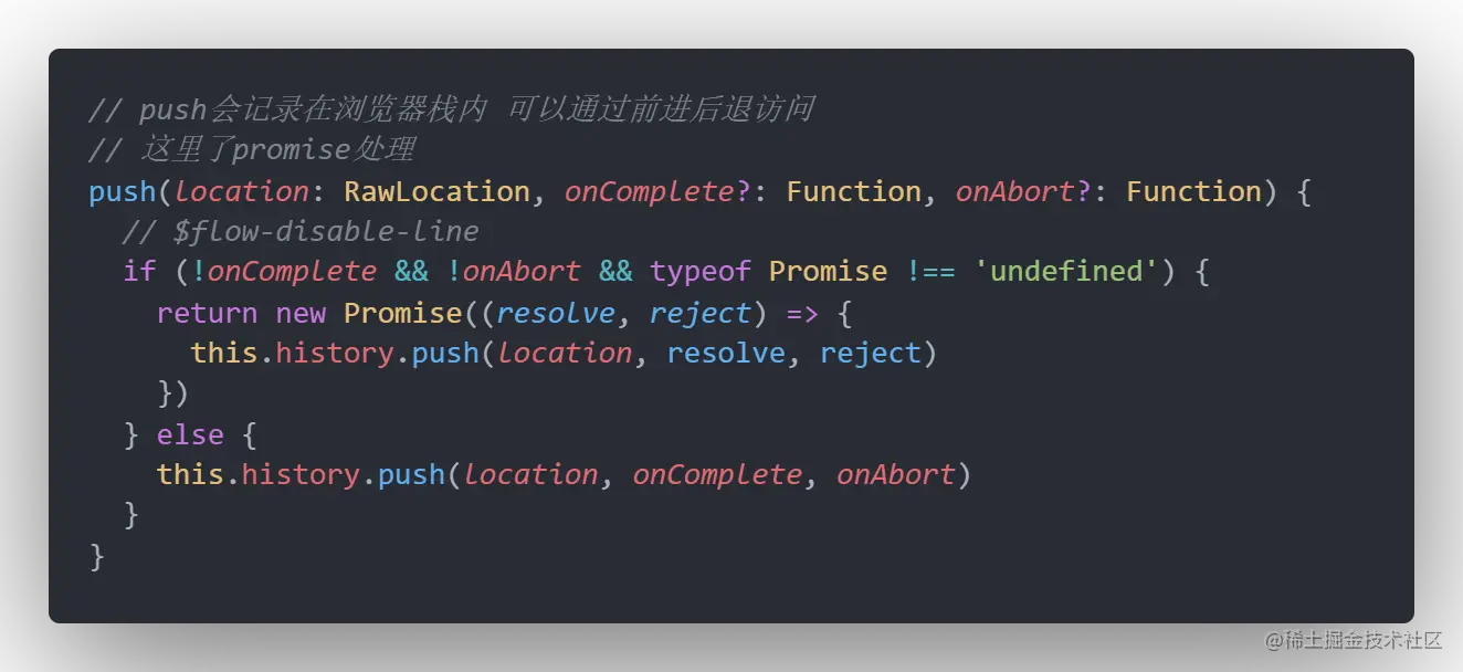 下午在写路由跳转的时候用router.push方法,该方法是返回一个promise实例。