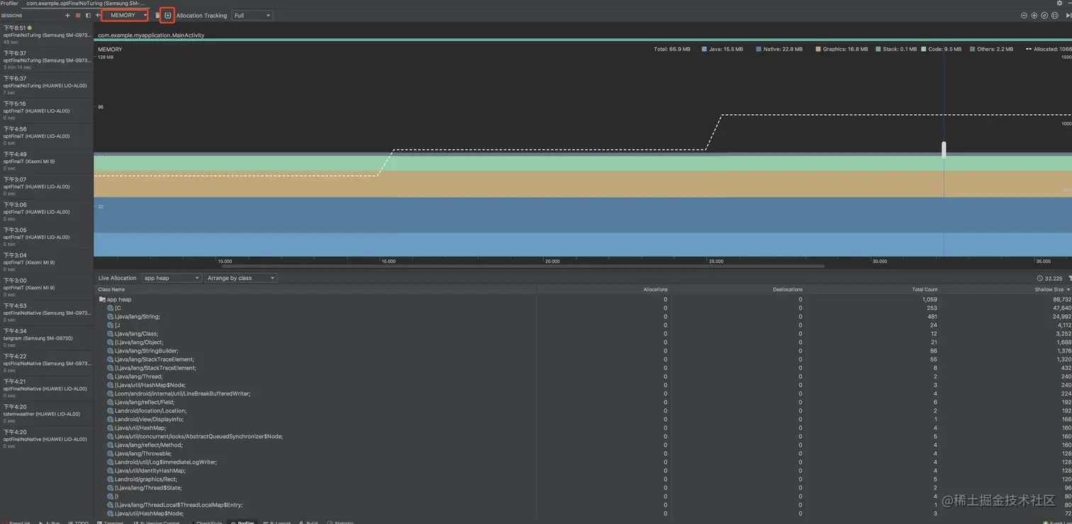 我们可以使用Profiler来进行简单的Java和Native内存分析。