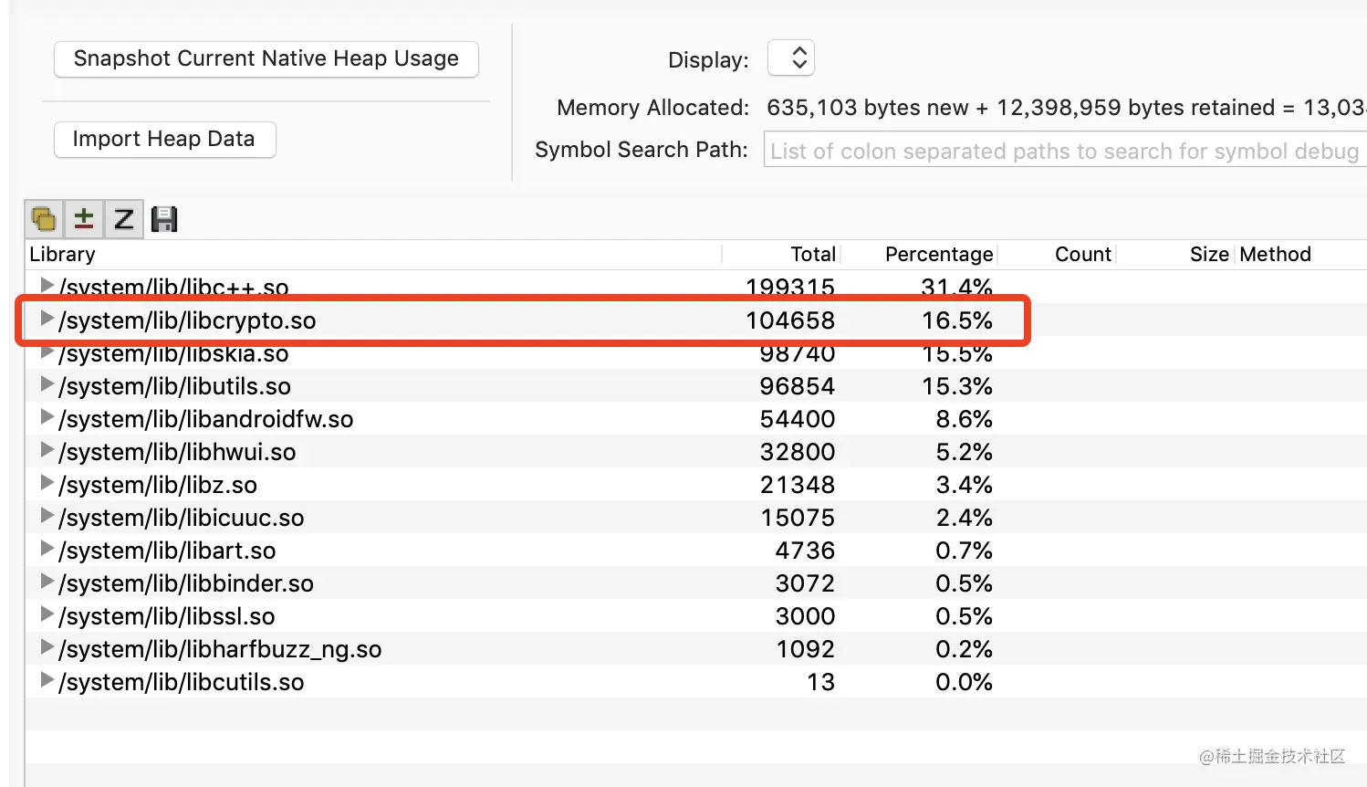 目前Android的网络请求默认是集成了okHttp实现的。在开发过程中我们影响不到其内部的配置。会发现最后会在native内存残留很大一部分的okhttp相关占用。这里暂时不进行理会。