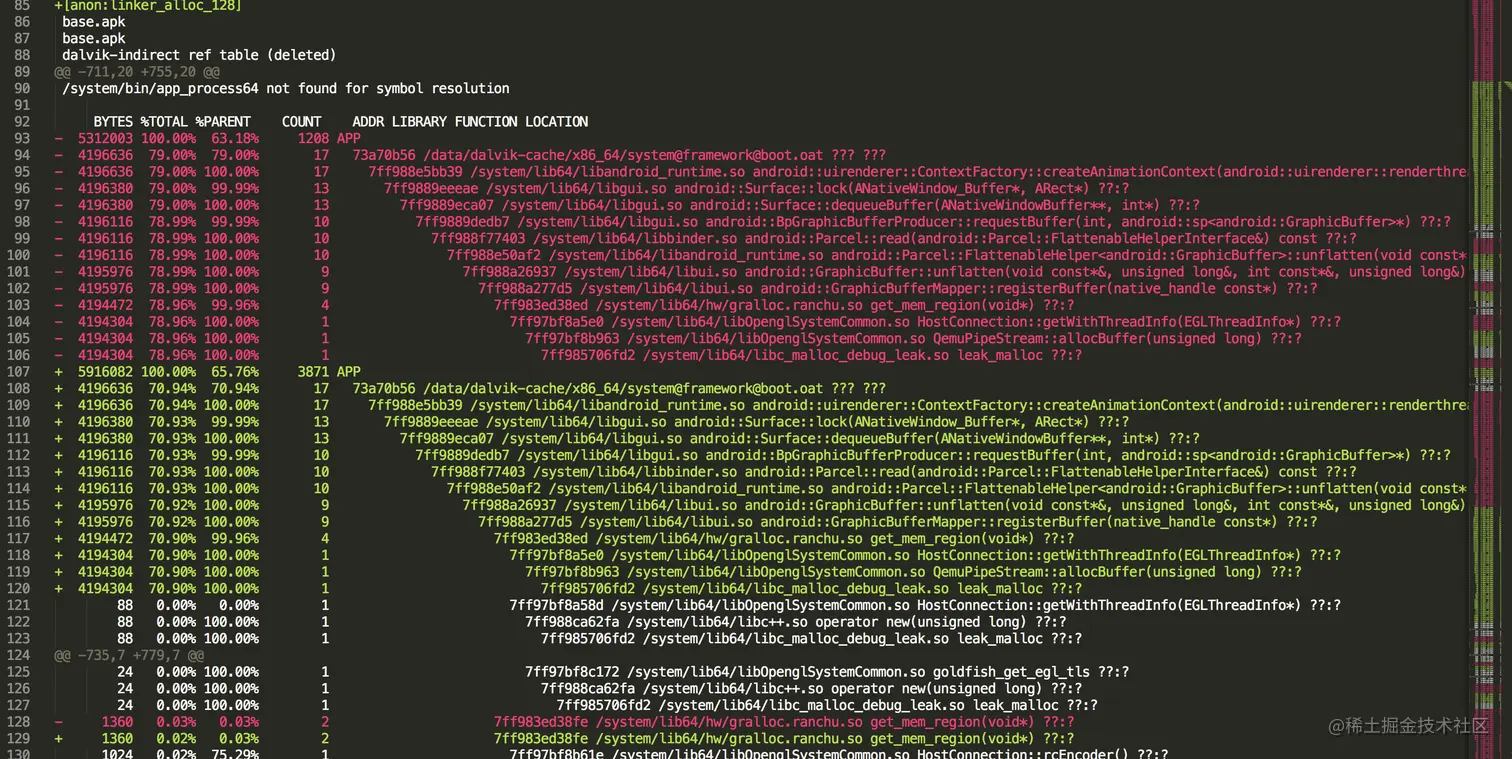 - python native_heapdump_viewer.py before.txt > before-deal.txt 和 python native_heapdump_viewer.py after.txt > after-deal.txt (会依赖手机上的一些so库,可以根据提示adb pull到PC上)