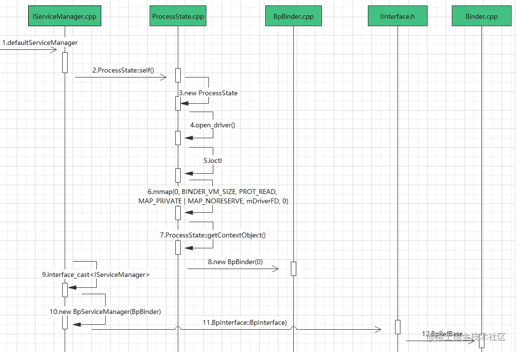 BpBinder是客户端用来与Server交互的代理类,p即Proxy的意思;BBinder则是proxy相对的一端,它是proxy交互的目的端。如果说Proxy代表客户端,那么BBinder则代表服务端。这里的BpBinder和BBinder是一一对应的,即某个BpBinder只能和对应的BBinder交互。上面代码在defaultServiceManager()函数中创建了这个BpBinder,给BpBinder构造函数传的参数handle的值是0。这个0在整个Binder系统中有重要含义—因为0代表的就是ServiceManager所对应的BBinder。