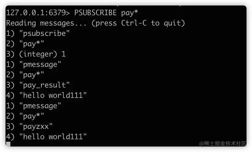 使用 Redis 订阅模式,我们需要使用一个新的指令 psubscribe。