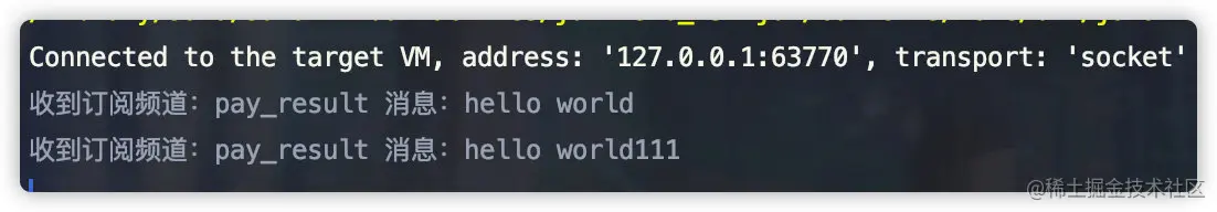 那么一旦有其他客户端往 pay 开头的频道,比如 pay_result、pay_xxx,我们都可以收到消息。