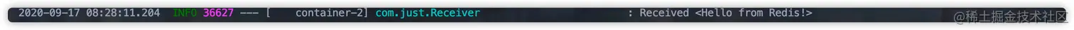 最后我们使用 StringRedisTemplate#convertAndSend 发送消息,同时 Receiver 将会收到一条消息。