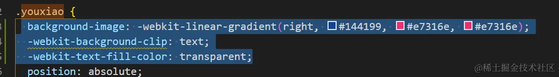 字体渐变色 草莓千层蛋糕 2020-09-23 212 阅读1分钟 background-image: -webkit-linear-gradient(right, #144199, #e7316e, #e7316e); -webkit-background-clip: text; -webkit-text-fill-color: transparent; 颜色从右边往左边排