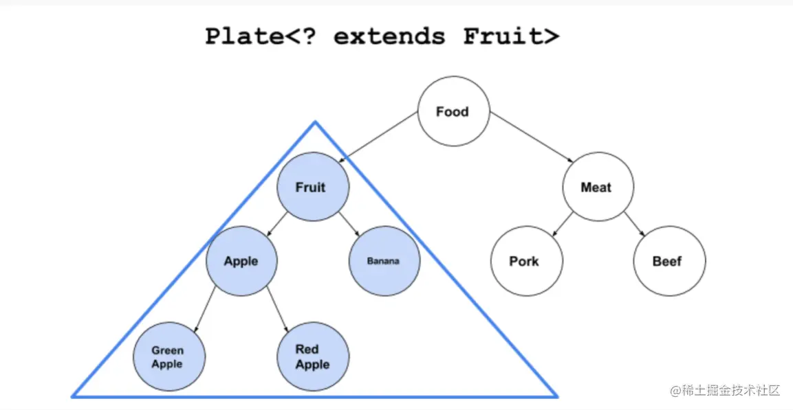 着这个体系中,上界通配符Plate<? extends Fruit>覆盖下图中蓝色的区域:
