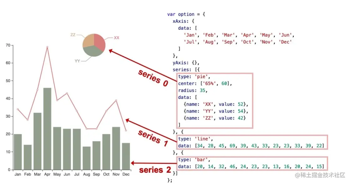 // 每个系列,也有 type 描述“子类型”,即“图表类型”。