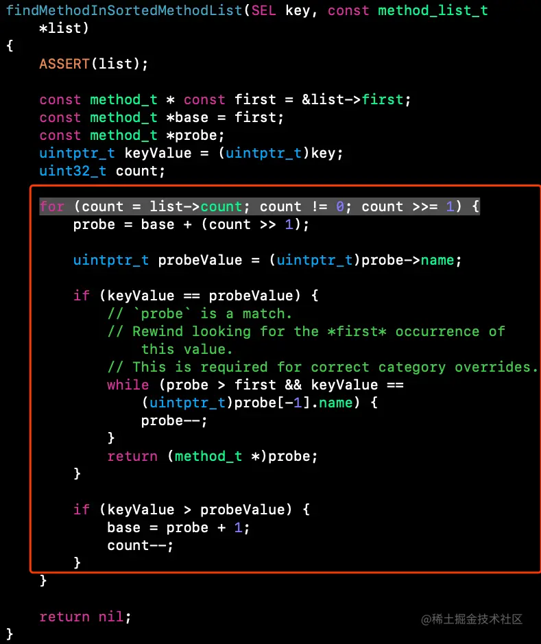 - search_method_list_inline是查找方法,里面包含著名的二分查找算法
