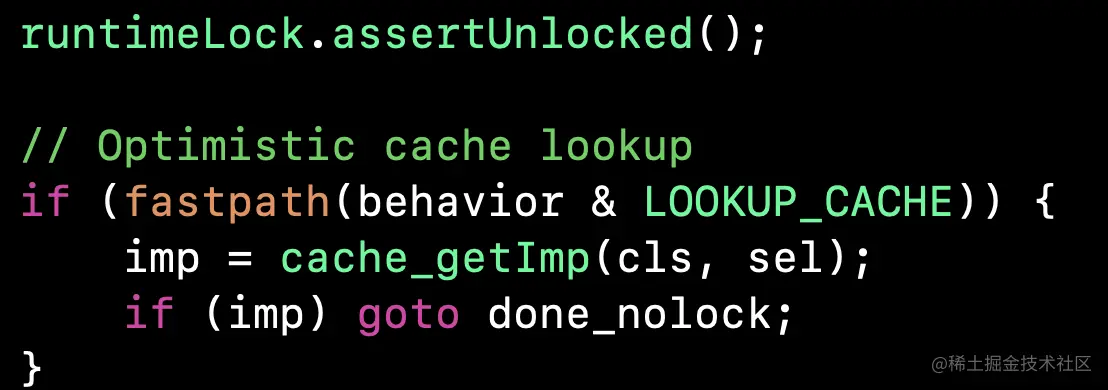 此处是无锁的缓存查找,如果找到了imp,就调用done_nolock。