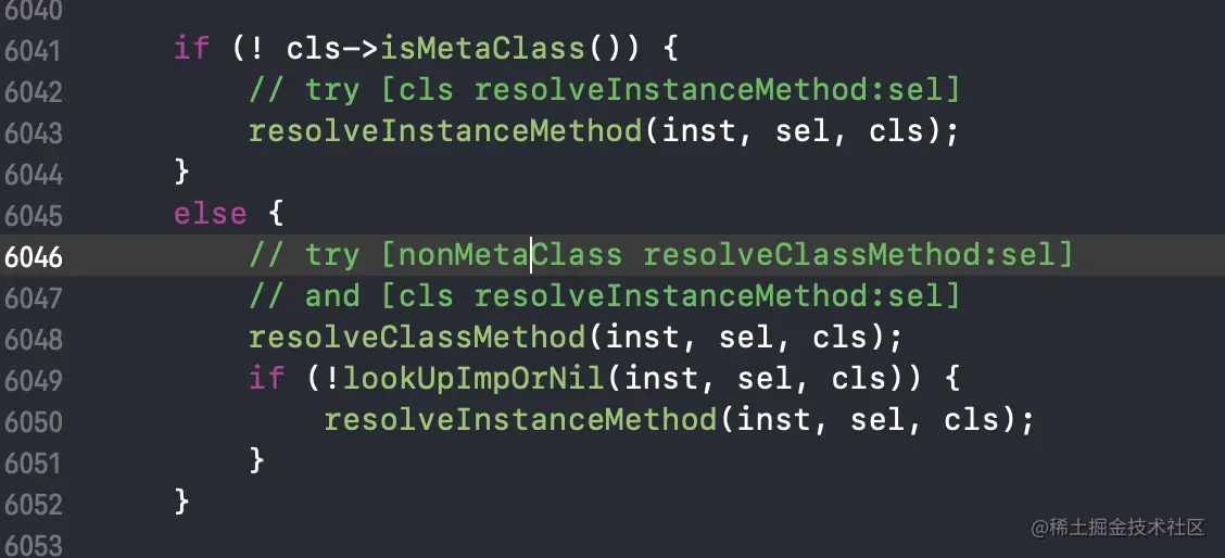 在源代码项目中全局搜索lookUpImpOrForward方法,其实在上图中已经指出了该方法的实现文件在objc-runtime-new.mm:6095处。