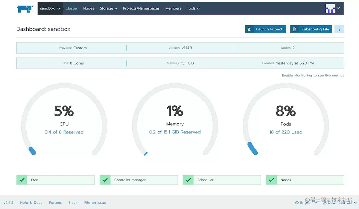 Rancher为企业部署、操作、访问和保护Kubernetes提供管理平台,IT人员可以制定策略及轻松调查事件。当然,您也可以只用来作为WEB UI 哈哈~~~