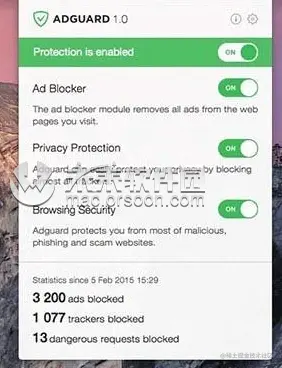广告拦截器。 对所有传入流量进行微妙的过滤,此外,广告在加载到页面之前会被阻止。 浏览安全性。 Adguard使用我们的数据库检查每个页面中是否有恶意内容,并阻止来自潜在危险请求的请求。 隐私保护。 强大的间谍软件筛选器将阻止任何计数器和跟踪工具。使用Adguard,您可以不再担心Internet上的操作的隐私性。 Adguard可在所有浏览器中使用。 Safari,Chrome –命名。没有例外。 易于安装。 几次点击,您的Mac受到了广告保护。您不必为过于复杂的设置而烦恼-只需上网冲浪,Adguard即可完成所有工作。 屏蔽视频广告。 任何网站上的任何视频广告– Adguard都将对其进行阻止。 应用程序过滤。 Adguard不仅仅是浏览器的插件。它可以帮助您摆脱Mac上任何应用程序中的广告。 从10.10 64位及更高版本开始的所有OS X版本均支持。 Adguard具有直观,简单的用户界面,并具有诸如Adguard Assistant和过滤日志之类的附加功能。 每日广告过滤器和网络钓鱼数据库更新。