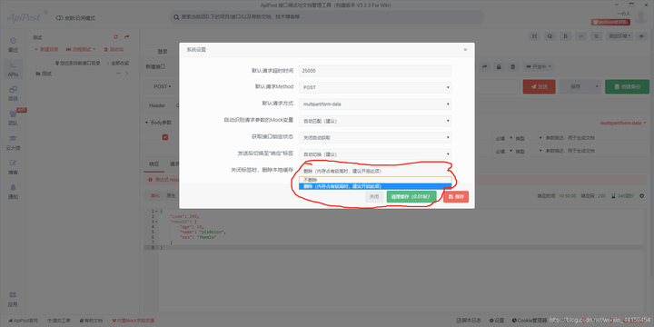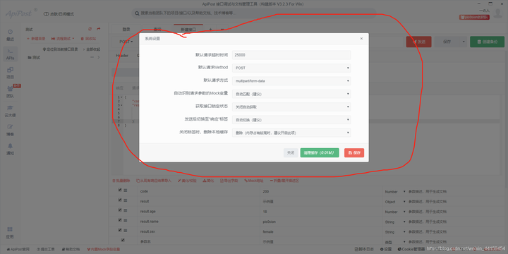 一.默认请求超时时间 apipost默认设置的是25000毫秒,就是在25秒钟之内响应没有成功的话就默认失败,我们也可以自定义设置8秒或者10秒.
