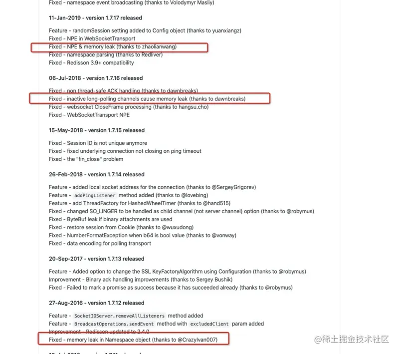 看了下最近的版本发布日志,发现这个框架的最新版本已经是1.7.18,而且中间发布的几个版本多次修复了内存泄漏相关的问题