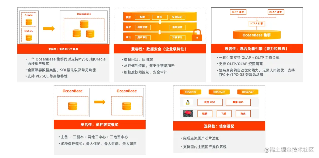 在刚刚结束的云栖大会上,OceanBase发布了2.2版本以及全新的OceanBase一体机。2.2版本的5大特性全新亮相,具有混合负载引擎和多种容灾方式,兼顾业务效率与数据安全。
