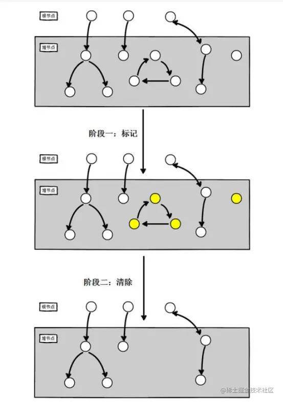 标记-清除(Mark-Sweep)算法,如它的名字一样,算法分为“标记”和“清除”两个阶段:首先标记出所有需要回收的对象,在标记完成后统一回收掉所有被标记的对象。