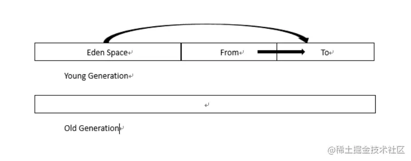 当系统创建一个对象的时候,总是在Eden区操作,当这个区满了,那么就会触发一次YoungGC,也就是年轻代的垃圾回收。一般来说这时候不是所有的对象都没用了,所以就会把还能用的对象复制到From区。
