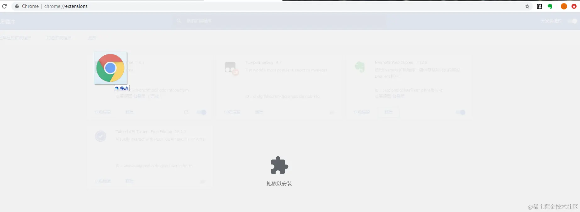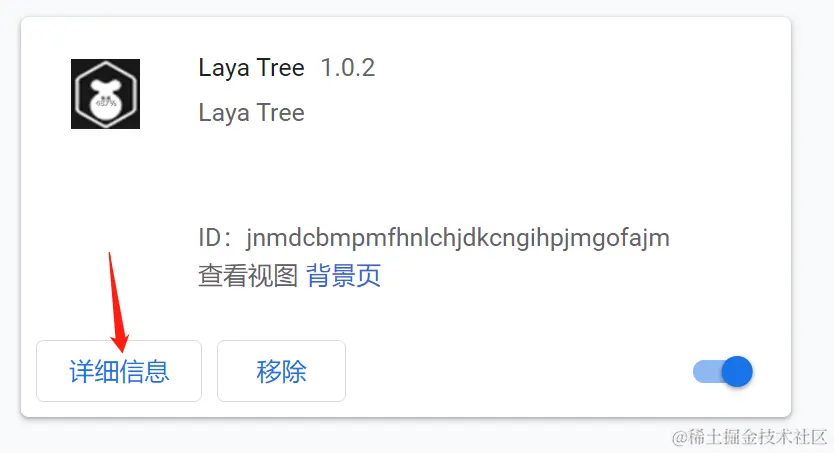 (安装方法: Chrome浏览器进入chrome://extensions/页面,打开开发者模式,将解压后crx文件拖入该页面即可,安装成功后重启浏览器),如果之前有安装开发版的LayaTree,可以直接删除.