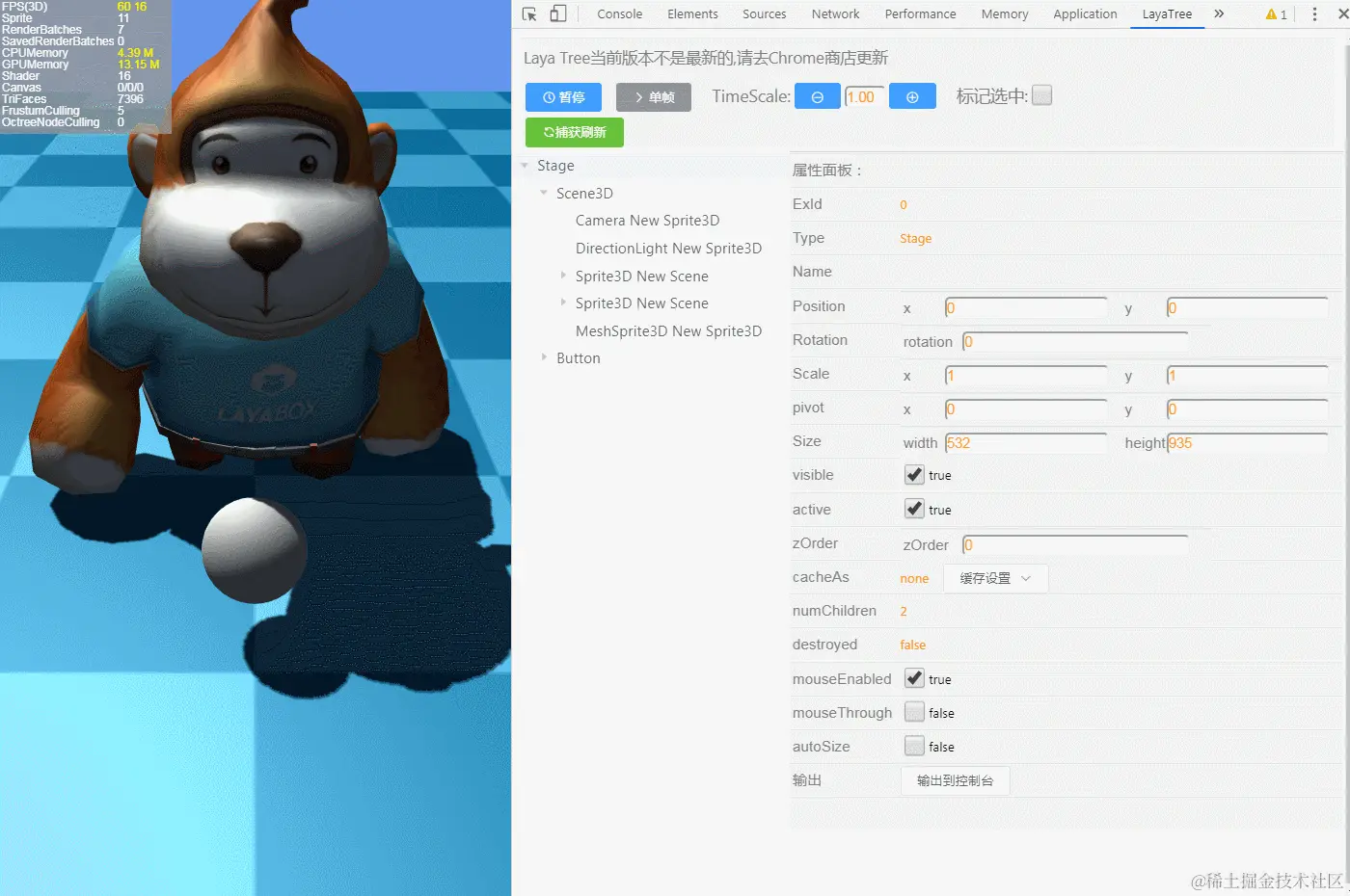 LayaTree是Chrome浏览器平台上的专门为Laya引擎设计的生产力工具。能在项目运行时阶段进行调试和修改。目前功能在不断迭代中,致力于实现类似于Unity编辑器的开发体验。相比于laya.debugtool.js在使用过程中导致的节点的强引用, LayaTree使用了索引缓存方案,在保证性能的同时,又避免了内存泄露的风险.