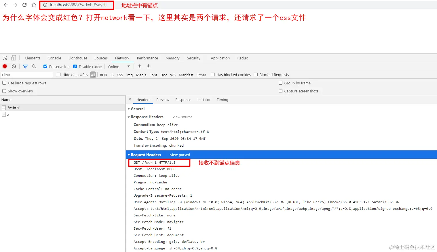 锚点的内容不会发送给服务器只与本地浏览器相关