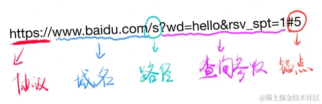 五大要素:协议,域名,页面路径,查询参数,锚点