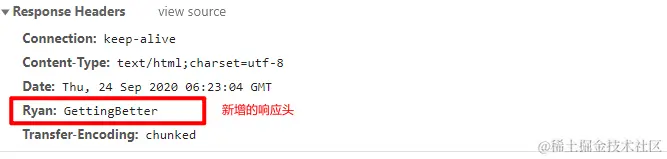 response.setHeader('Ryan','GettingBetter') // 在nodeJS中设置响应头
