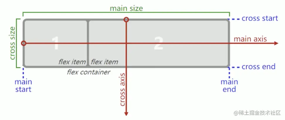 flex items 默认都是沿着 main axis(主轴)从 main start 开始往 main end 方向排布。