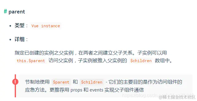 上面这张图片是vue官方的解释,通过children就可以访问组件的实例,拿到实例代表什么?代表可以访问此组件的所有方法和data。接下来就是怎么实现拿到指定组件的实例。