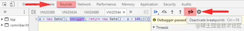 (function() {var a = new Date(); debugger; return new Date() - a > 100;}())