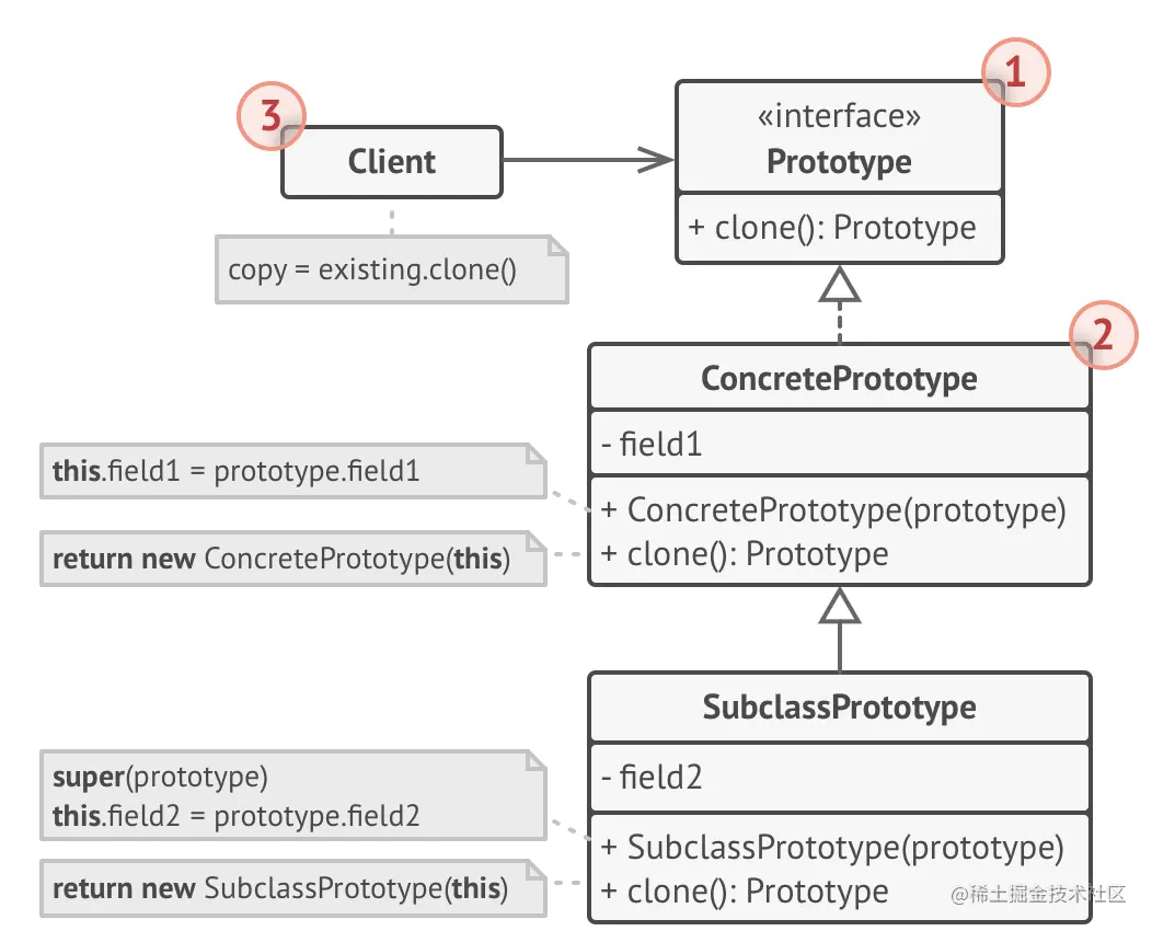 支持克隆的对象称为_原型。_当对象具有数十个字段和数百种可能的配置时,克隆它们可以作为子类的替代方法。