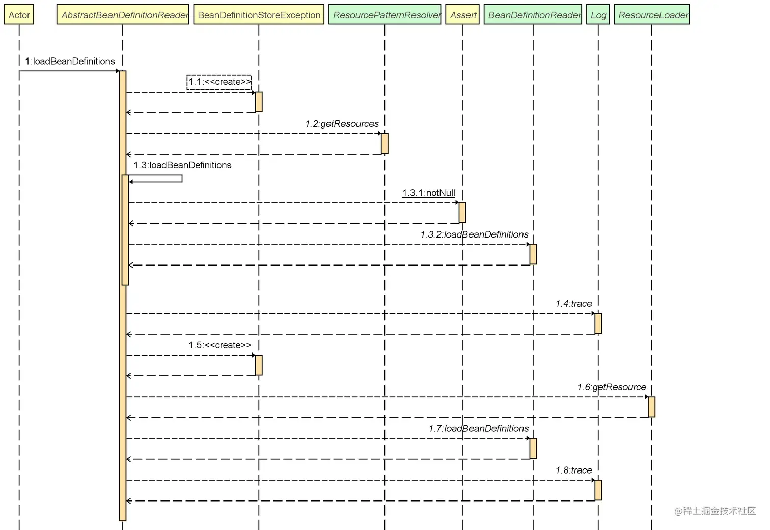 XmlBeanDefinitionReader#loadBeanDefinitions(Resource... resources)方法,所以这是一个递归的过程。 - 另外,获得到的 Resource 的对象或数组,都会添加到