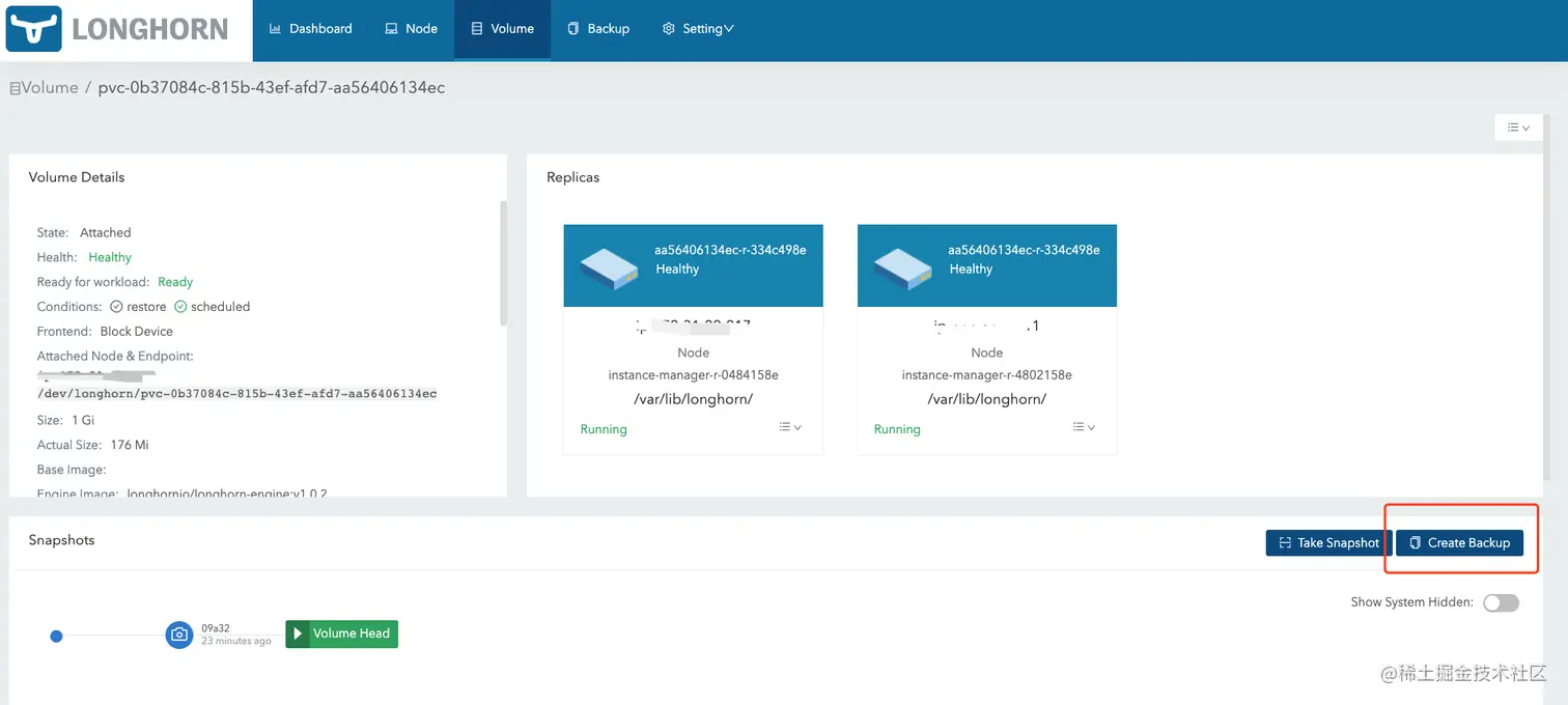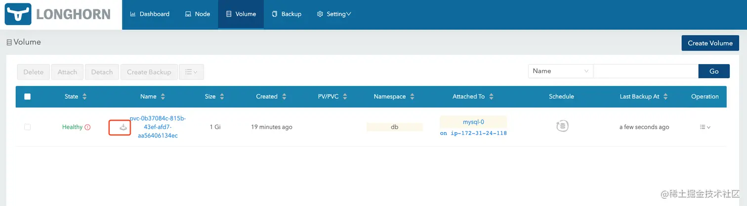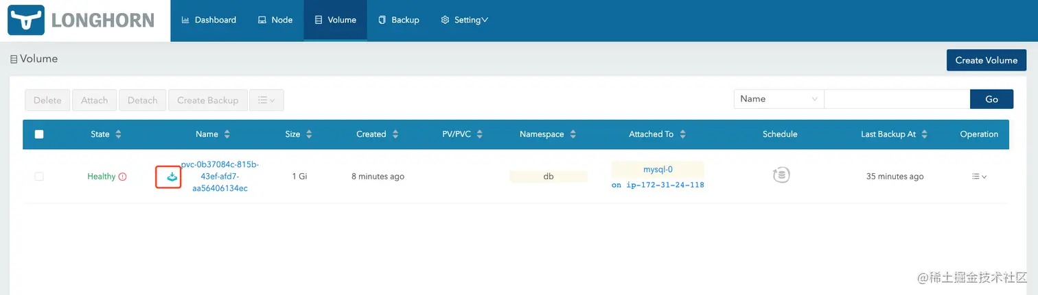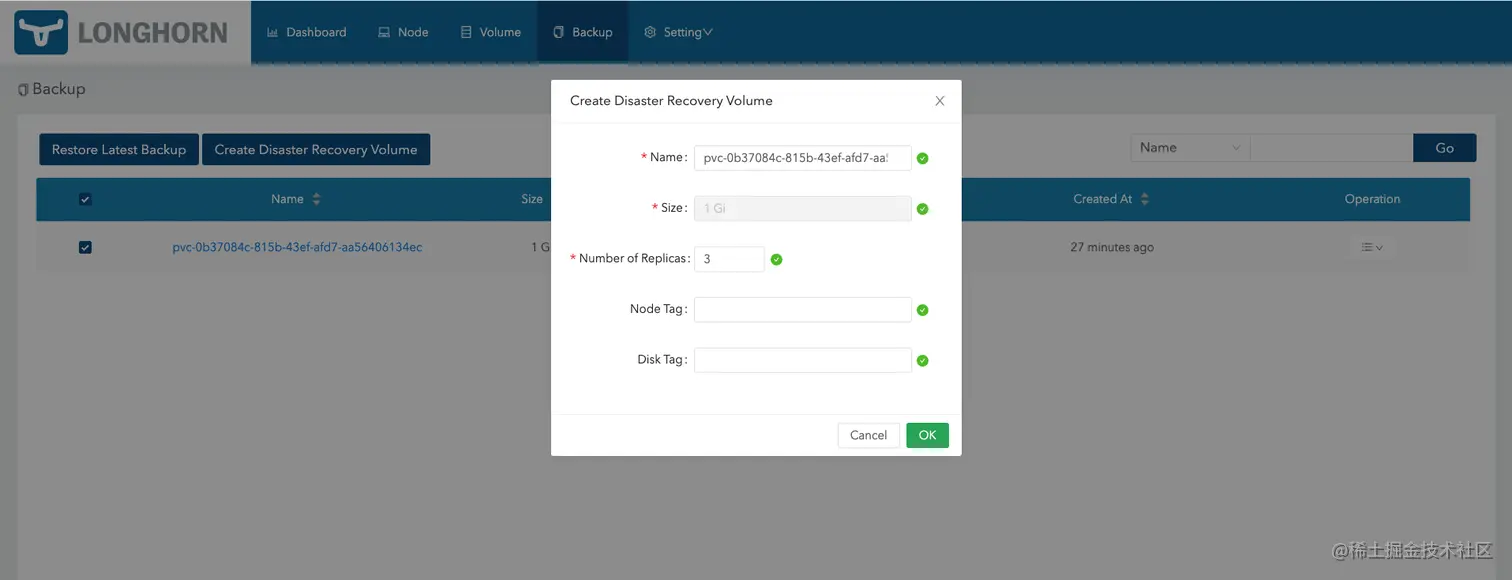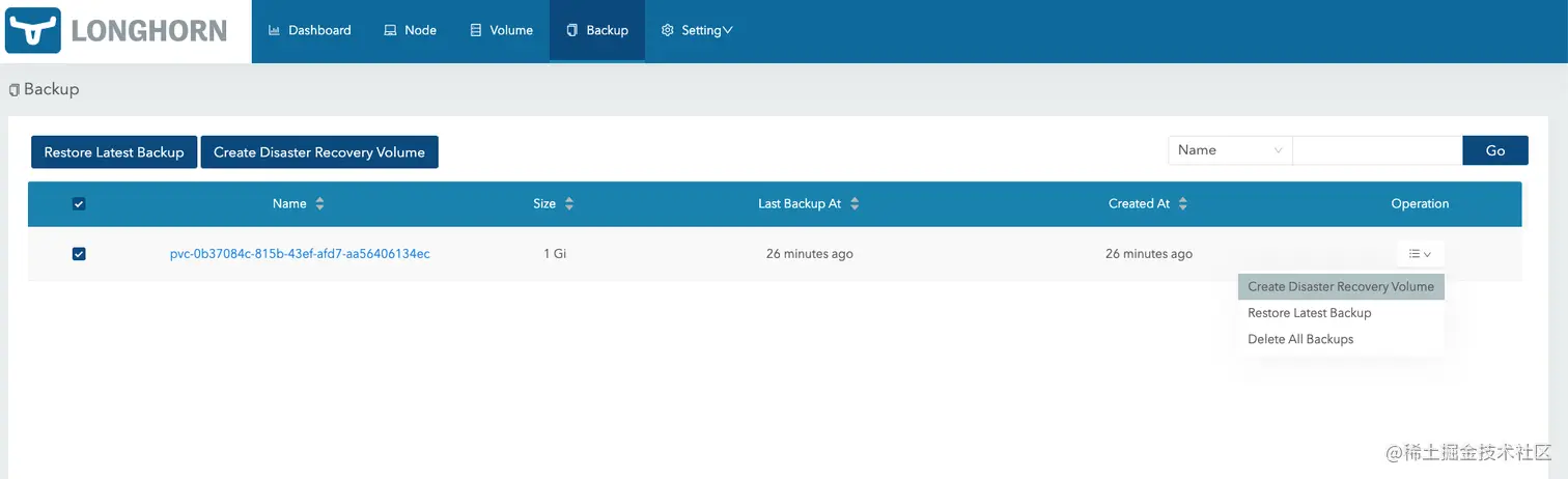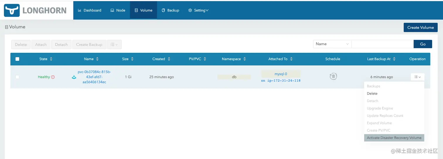 保存后,访问 Volume 页面可以看到我们新创建的容灾备份卷。