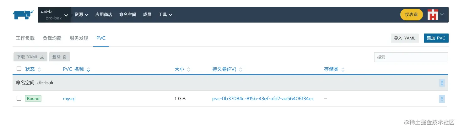 访问Rancher可以看到PVC已经创建成功。