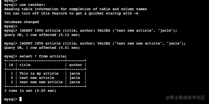 使用恢复的PVC创建MySQL应用,再查询一下数据,可以看到数据也恢复过来啦!大功告成!