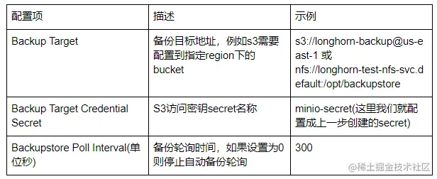 目前Longhorn支持NFS/S3两种备份方式,在本例中,我们使用minio搭建了一个私有S3服务,这里我们使用s3方式配置。
