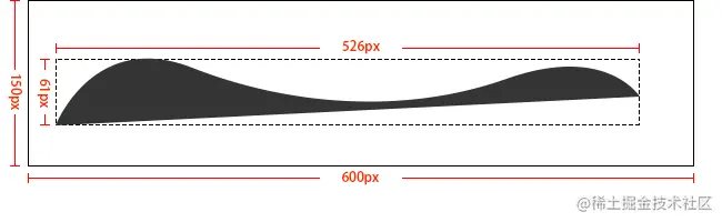 建立的画布是600x150(实线部分),但是实际上导出的SVG高宽是形状大小(虚线部分)。