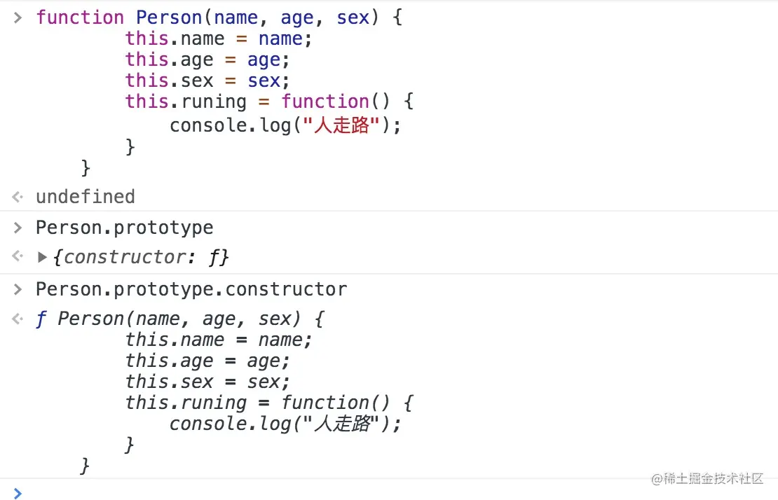 首先我们定义了一个方法Person,然后在Function的prototype上添加了一个属性runing,这个属性是一个方法。