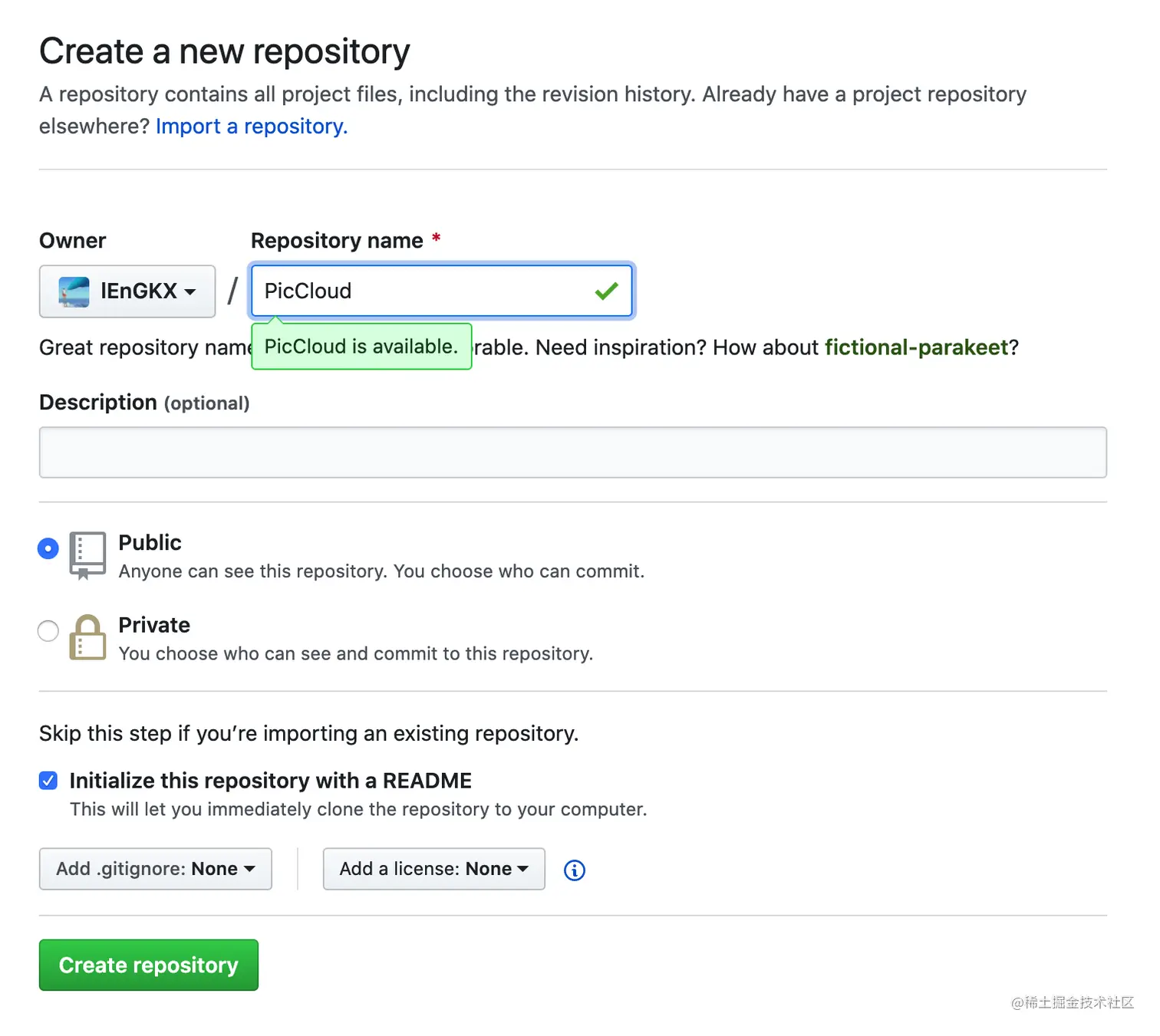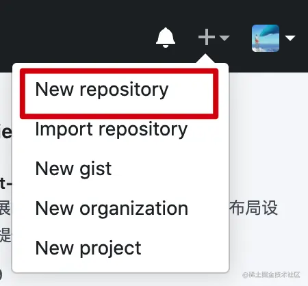 点击 github 主页右上角的 + 创建 New repository;