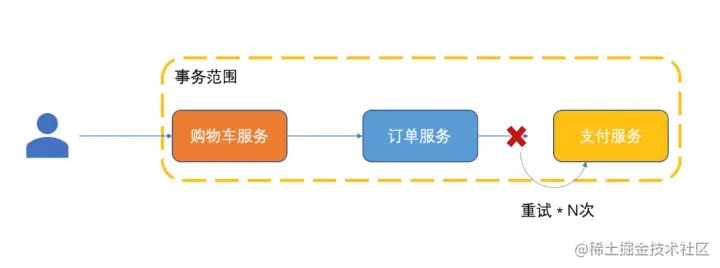 不过,相比「回滚」来说「重试」的适用场景更少一些,所以我们第一步首先要判断,当前场景是否适合「重试」。比如: