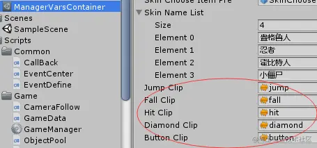 public AudioClip jumpClip, fallClip, hitClip, diamondClip, buttonClip;
