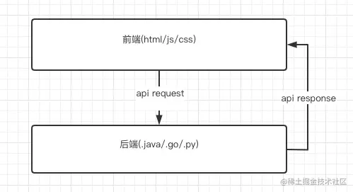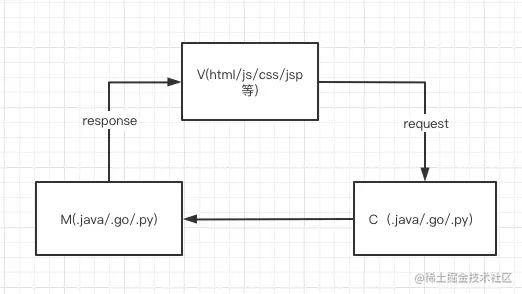 前后端分离,说的更多的是一种架构上的概念。在传统的web架构中,比如经典的MVC,会分数据层、逻辑层、视图层。这个视图层即我们所说的前端了,映射到代码层面,就是html、js、css等代码文件。数据层和逻辑层更多的是后端部分,例如我们的 .java 、.go、.py等文件。这些文件会在一个工程中,并不会单独的开发、测试、部署。