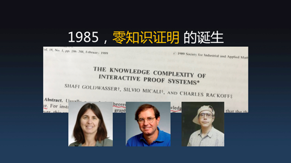 “零知识证明”这个概念在区块链底层技术架构里并不陌生,它是在1985年时由Goldwasser, Micali, 和 Rackoff 三人提出(如图)。虽然长期以来“零知识证明”只是局限在计算理论研究里的一个小领域,但是它带来的影响非常深远。