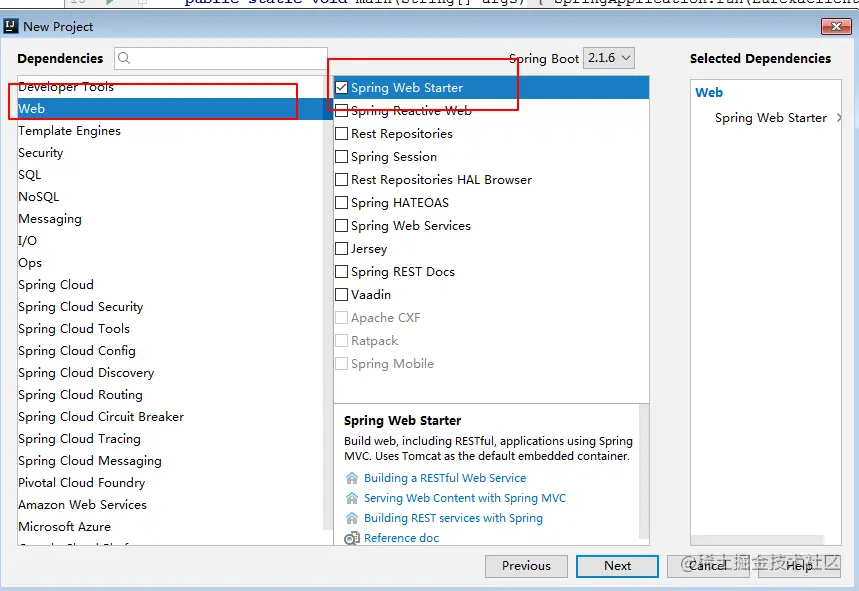 (1)选择web的starter,等下跑测试使用。