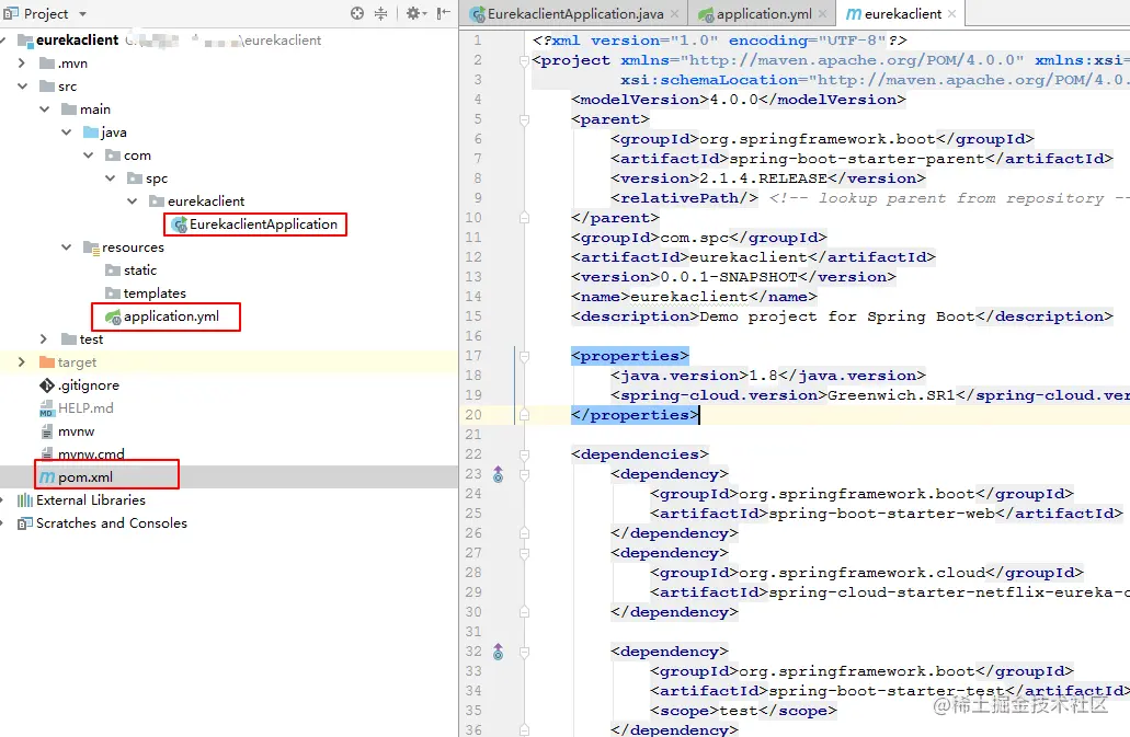 说明:就两个starter,一个web的starter;一个eureka-client的。