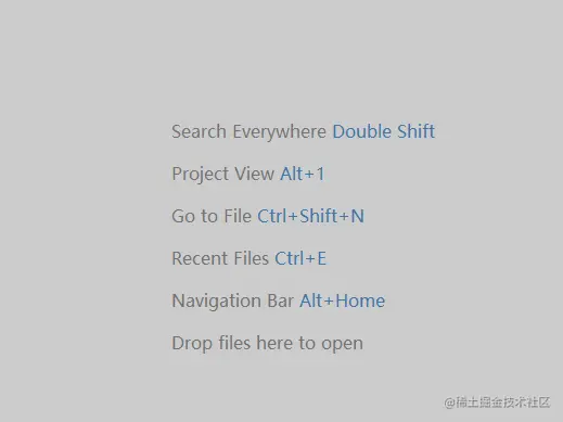 每次当你打开IDEA的时候,便会给你展现一个欢迎界面,会有4个快捷键,见