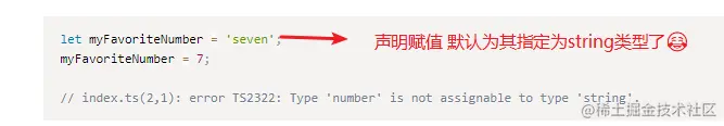 console.log(myFavoriteNumber.length); // 编译时报错 此时被推断为number类型,number上没有length属性