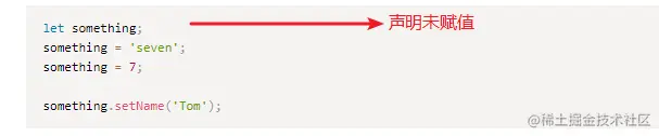 **变量如果在声明的时候,未指定其类型,那么它会被识别为任意值类型(any)!**对比 类型推论😁: